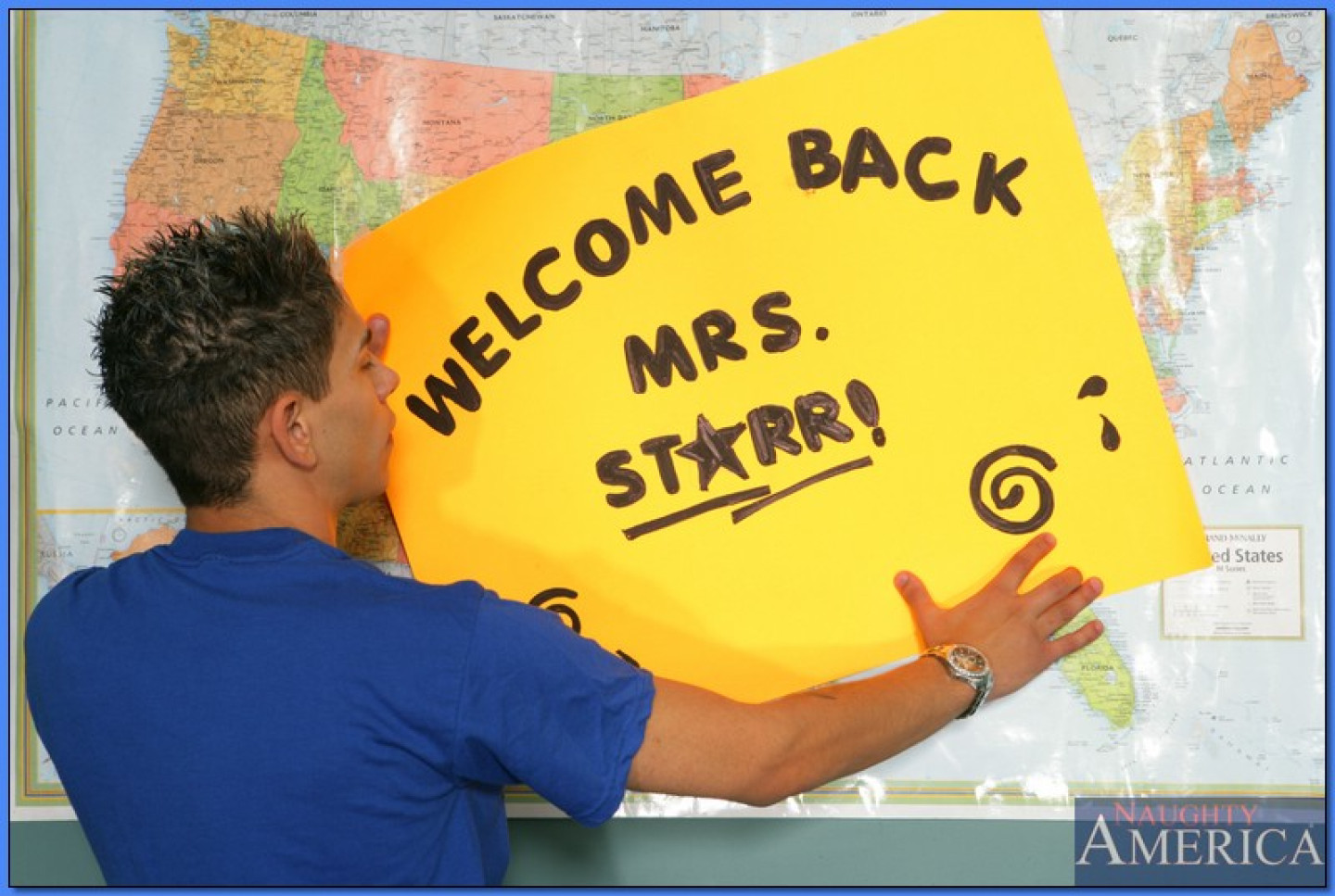 Teacher in glasses Emma Starr stripped to black lingerie and dicked