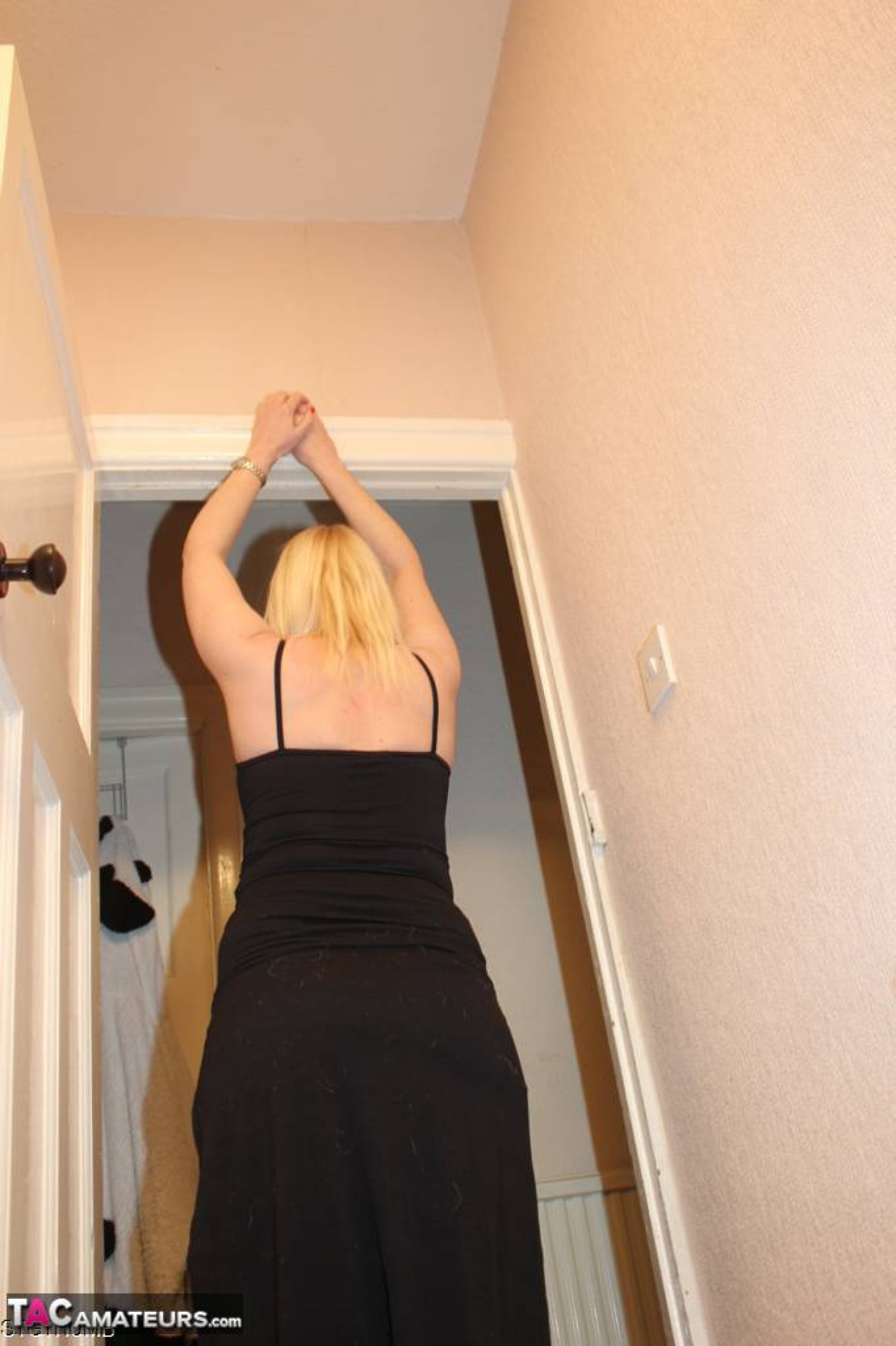 Blonde British amateur Tracey Lain plays with her pussy before sucking a cock