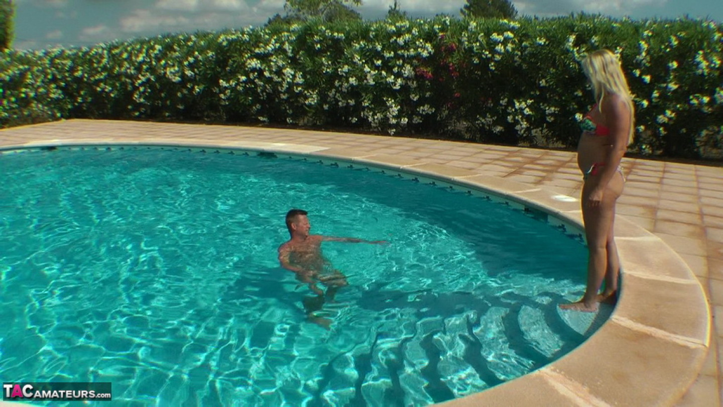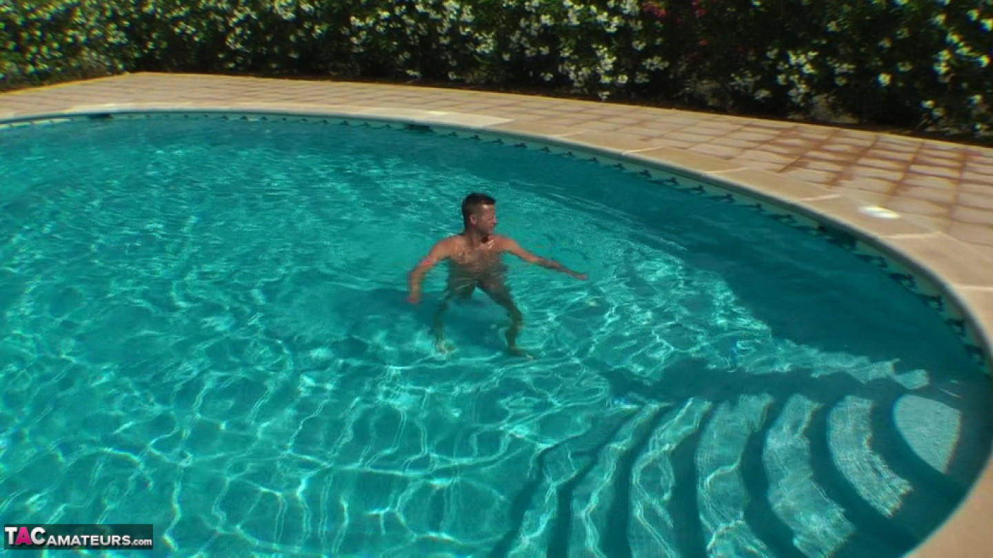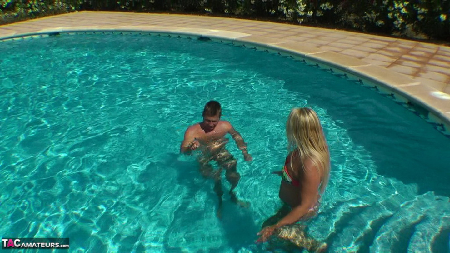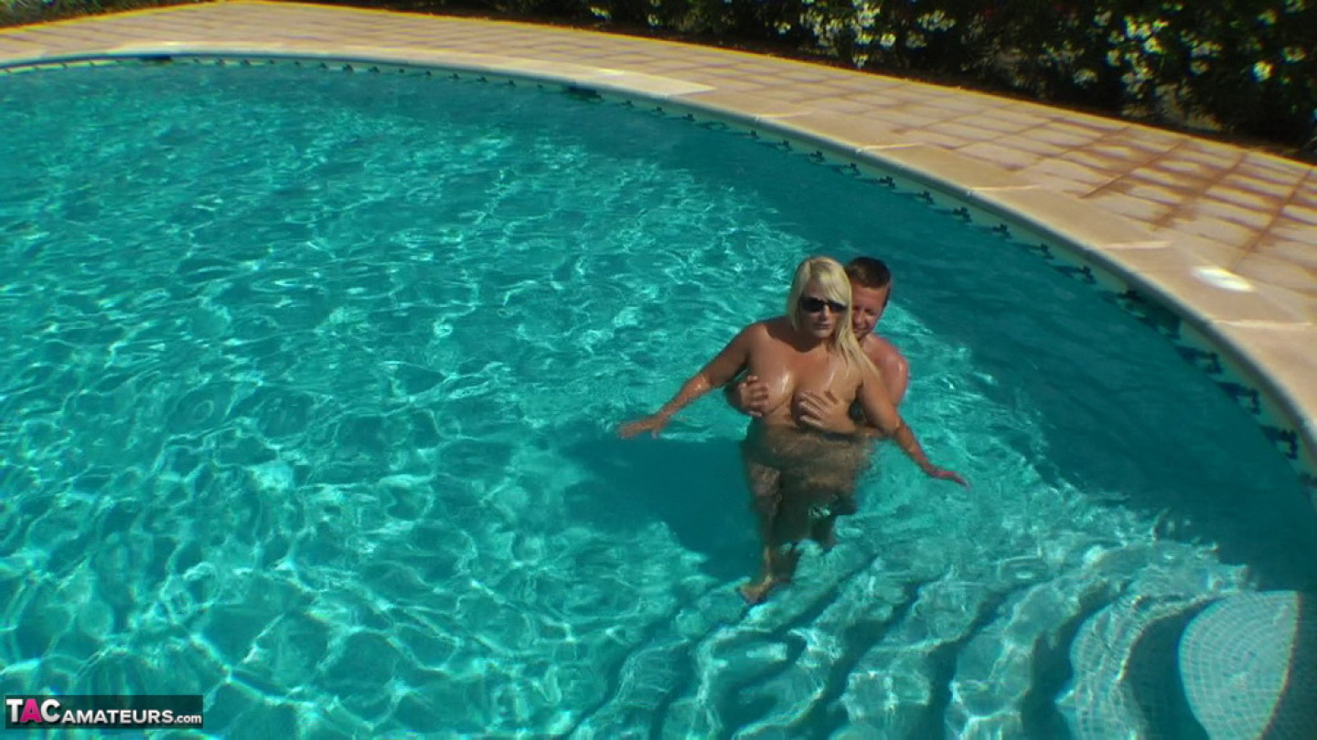 Naked blonde Sweet Susi has sex in a swimming pool while wearing sunglasses