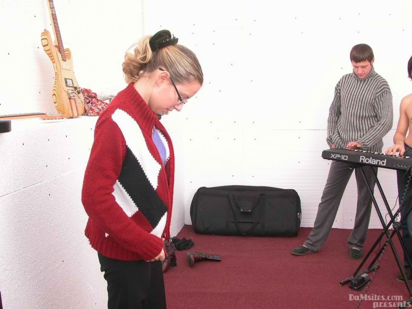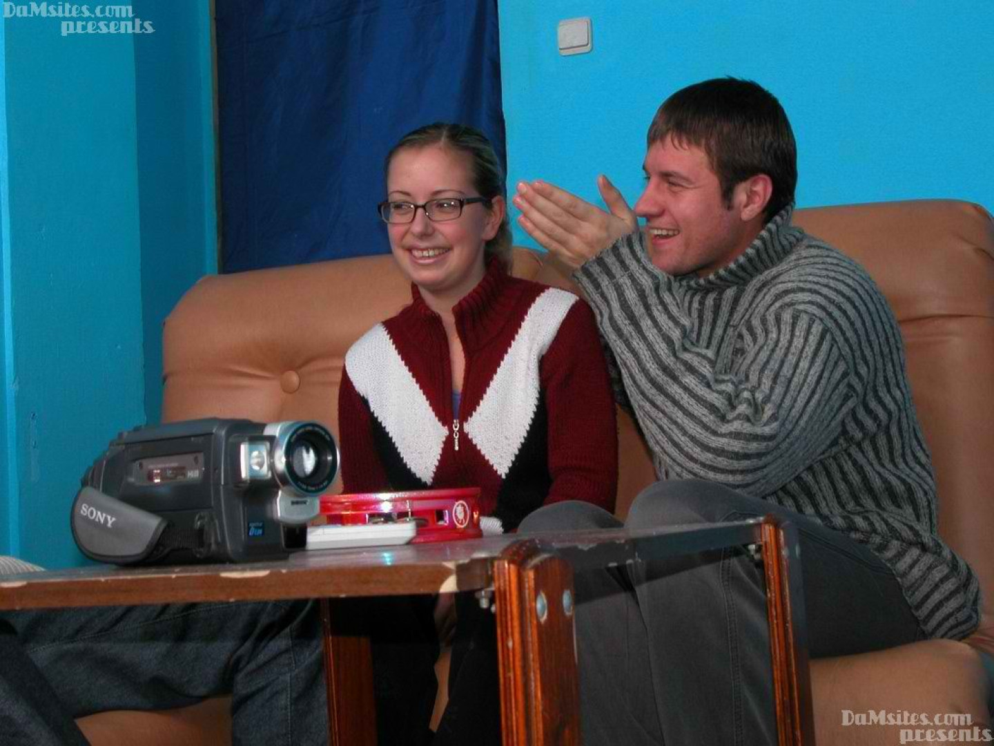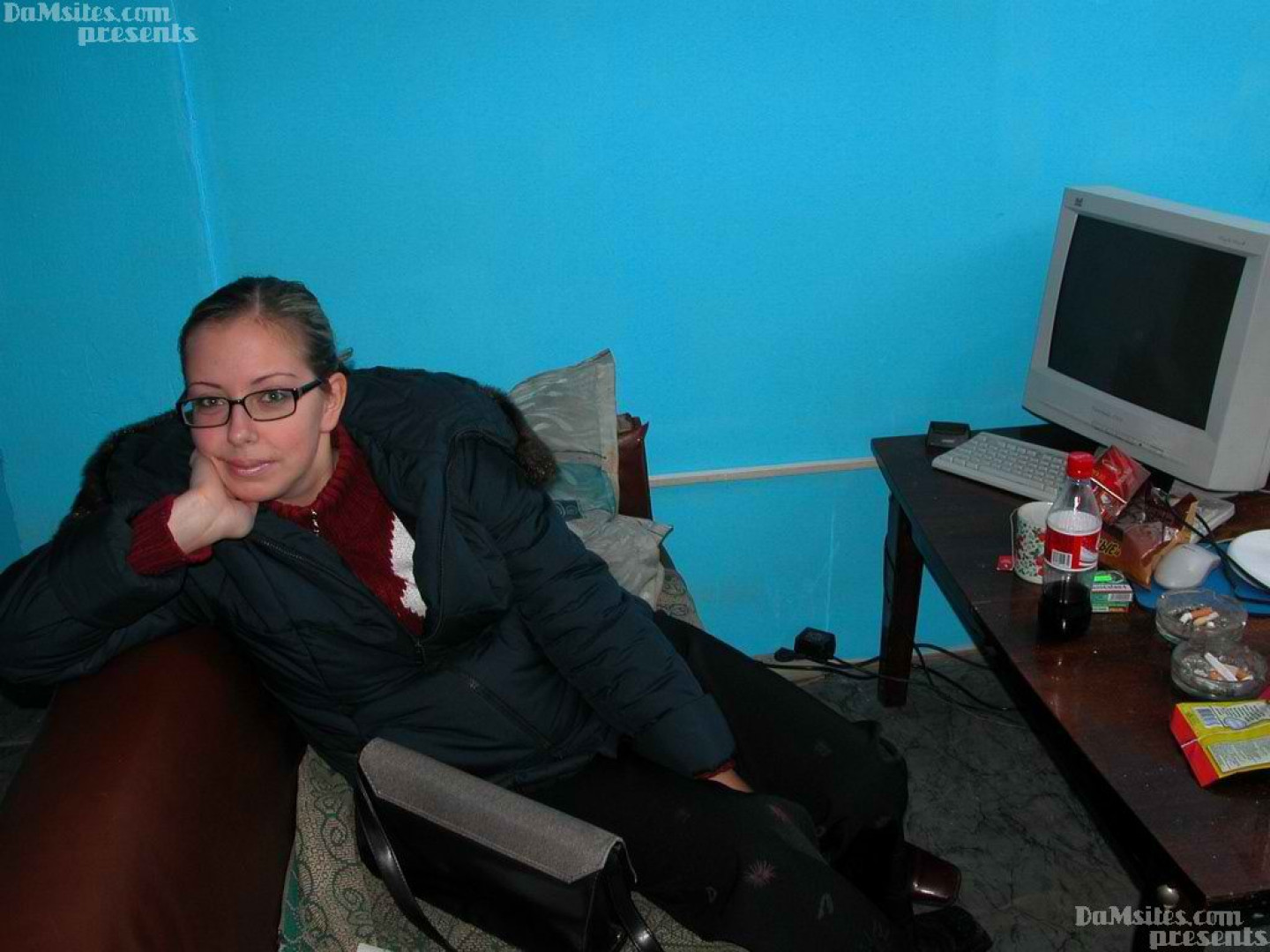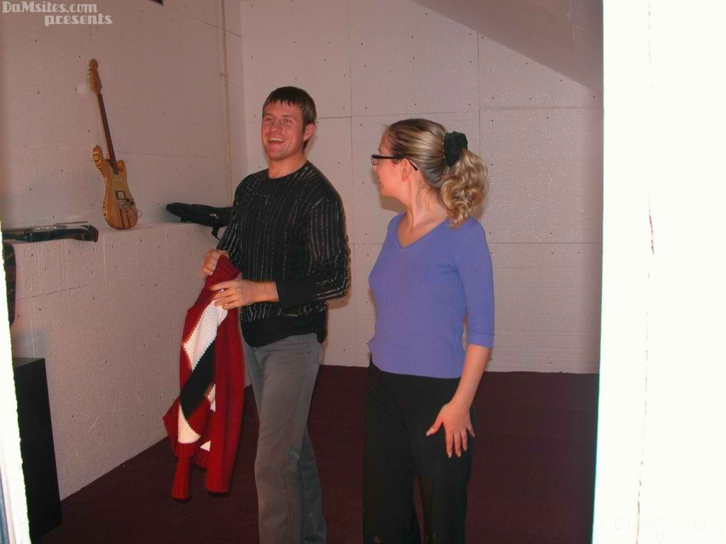 Amateur MILF in glasses takes two hard boners in her muff on the floor