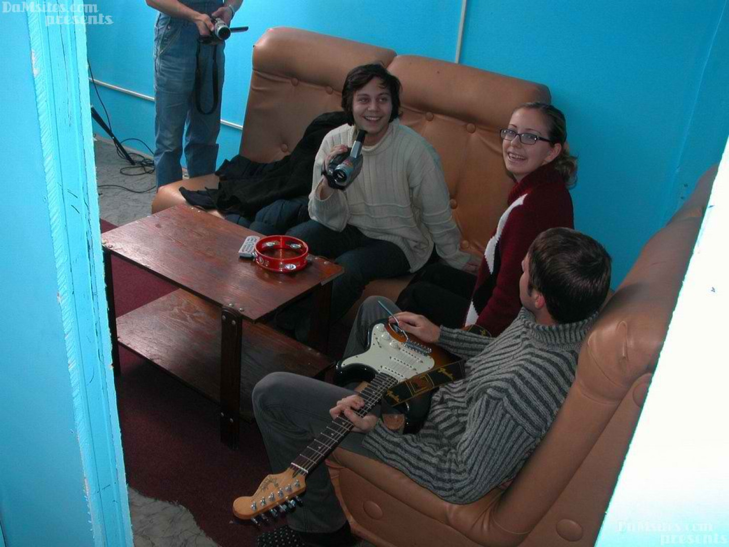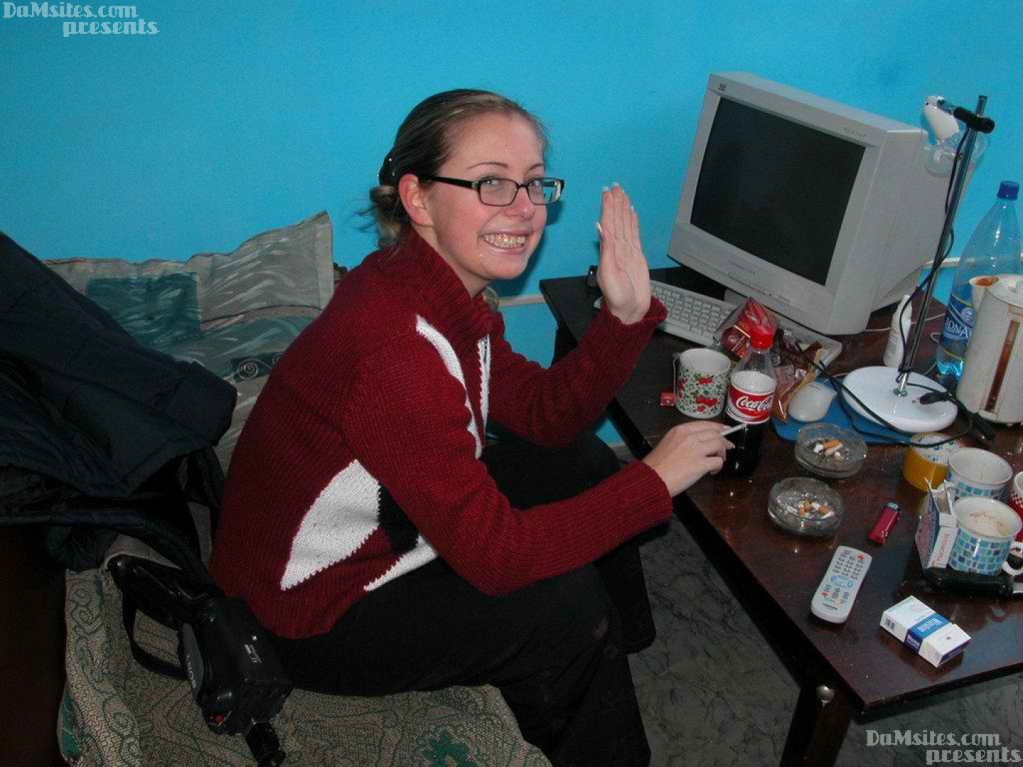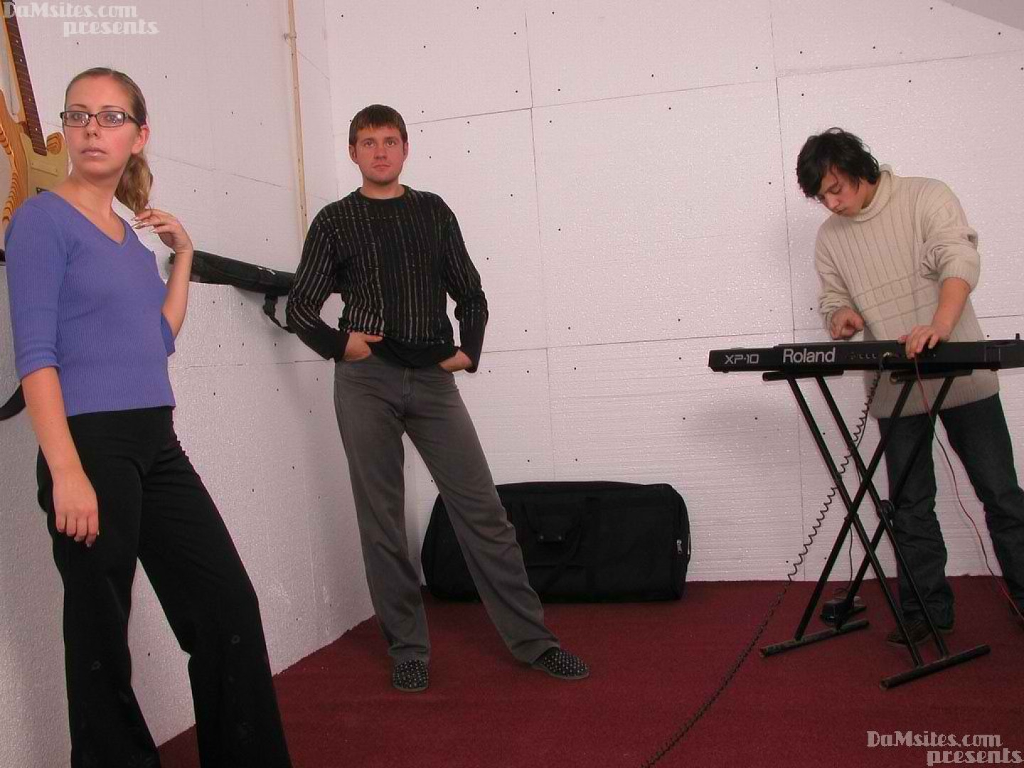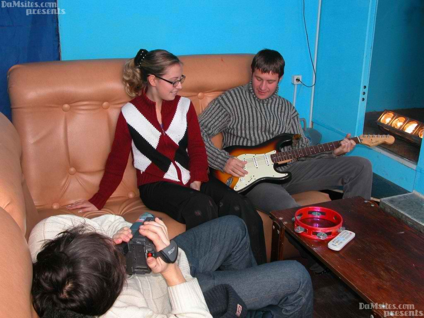 Amateur MILF in glasses takes two hard boners in her muff on the floor