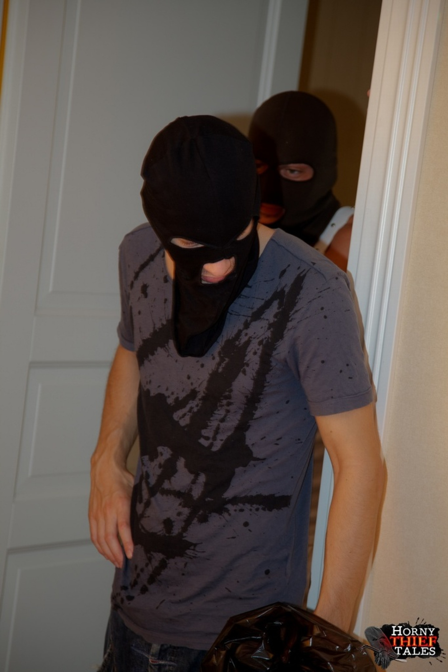 Young blonde Valya receives open mouth cumshots from masked robbers
