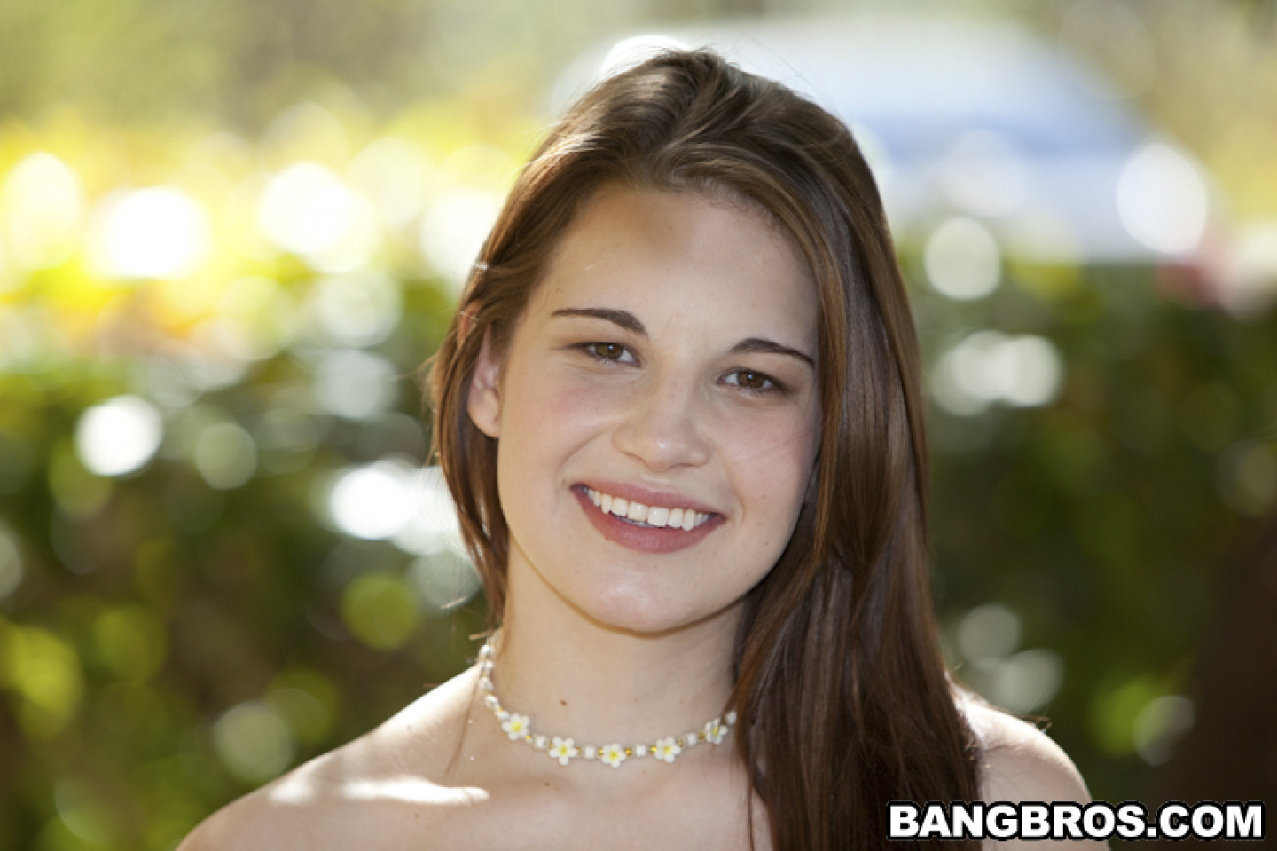 Teen babe with tiny tits Maxi Booty shows her shaved cunt outdoor