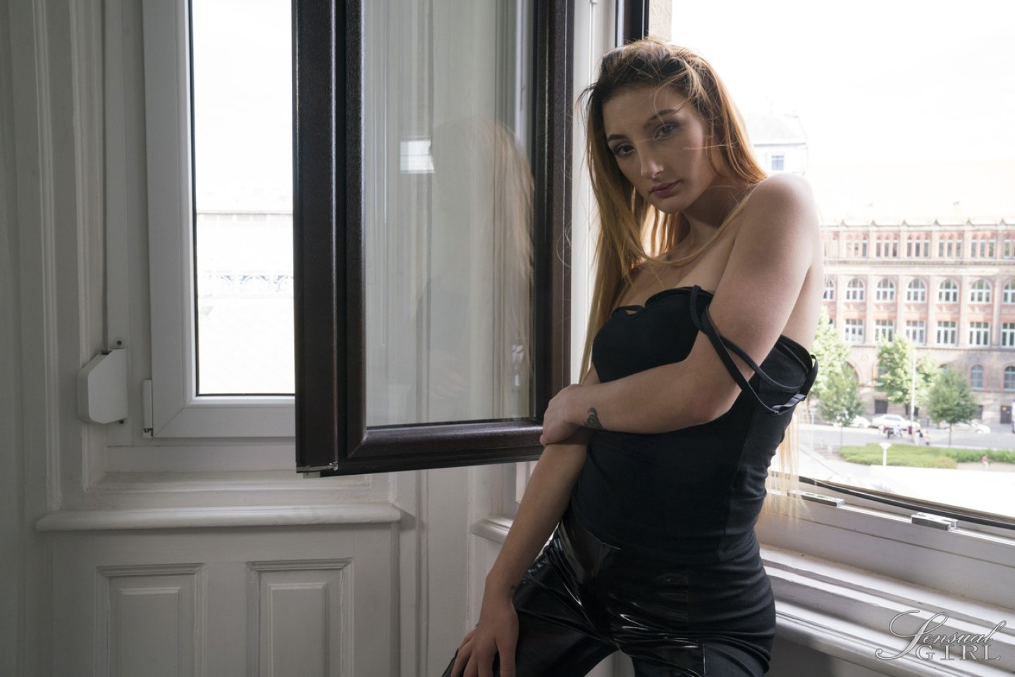 Blonde solo girl Maya Crush enjoys a cigarette after taking off her clothes