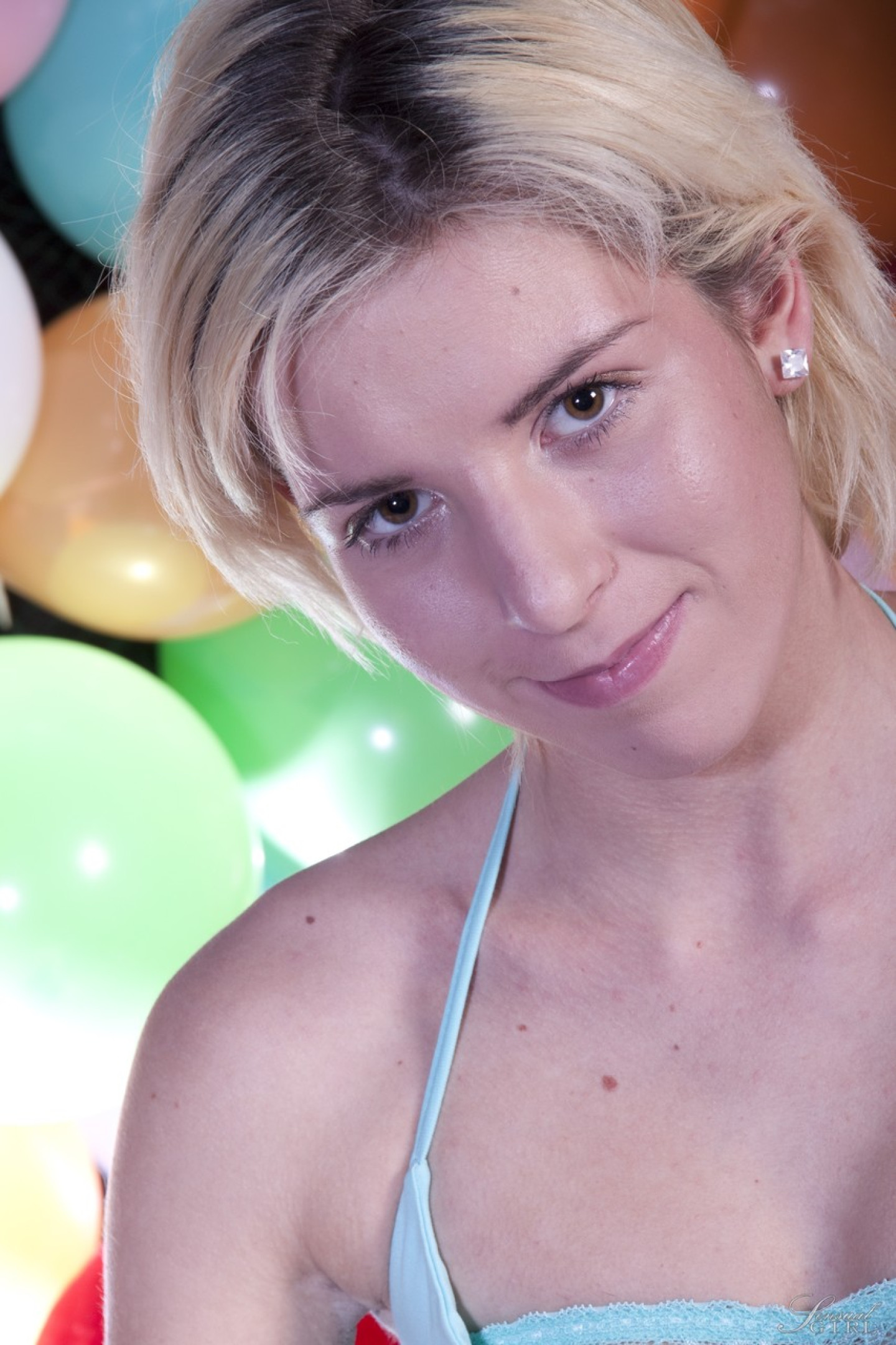 Blonde Czech Gabrielle Hell strips her slim body naked to spread pussy lips