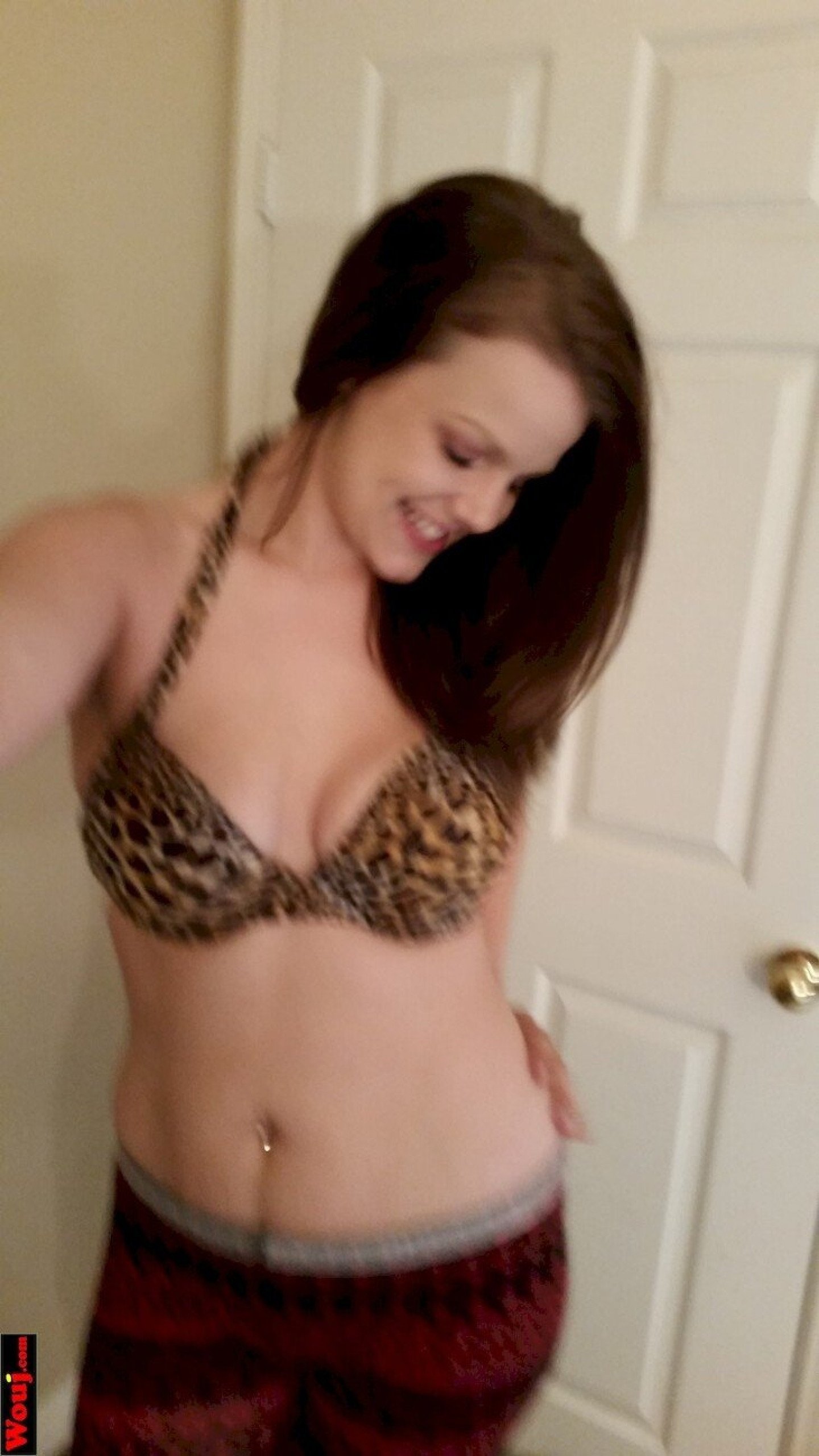 Solo cutie taking pictures of her tits in a leopard print bra